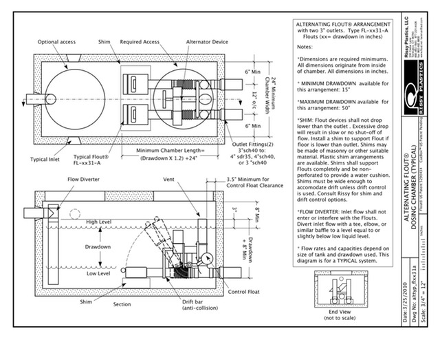 The Alternator requires at least 15 inches of drawdown (dd) but can alternate Flouts up to 50 inches of drawdown. Shallower arrangements are possible using the CueBox Sequencer. Very large arrangements are possible using the Alternator and two smalerl Flouts as a trigger.