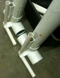 Trigger tube: Earlier Cuebox builds used flexible trigger tubing. The improved method uses rigid piping with smaller flexible connectors. The flexible tubing ran the risk of floating and airlocking. The rigid pipe is simpler and airlock proof. The small flex connectors are made of the same material as large Flout connectors. The durability of this material is well proven.