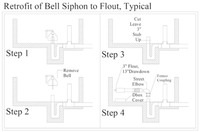 The basic Flout has one outlet pipe. It does the same job as a bell siphon without all of the problems. Simple, reliable, easy to install, and easy to inspect. A failed siphon is easily replaced with a Flout.
